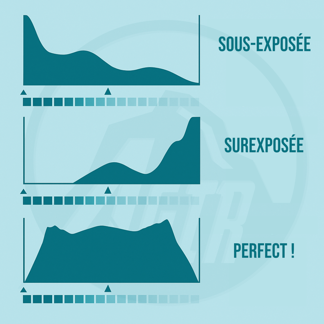 Comment lire ce graphique ? Quelques repères simples permettent de savoir si votre photo est correctement exposée techniquement, ou si elle est sous-exposée/surexposée. Si l’histogramme présente un gros pic collé sur la gauche, cela signifie qu’il y a beaucoup de pixels très sombres voire noirs dans votre image probablement une photo sous-exposée si ce n’est pas un choix artistique voulu. Inversement, un pic très élevé collé sur la droite indique une forte présence de pixels très clairs voire blancs, signe d’une probable surexposition avec des hautes lumières brûlées (détails perdus dans les blancs). Idéalement, pour une scène équilibrée, on cherche à obtenir un histogramme dont la courbe tient entièrement dans le cadre sans toucher les bords extrêmes : cela indique qu’aucune zone n’est complètement noire ni complètement blanche, donc qu’aucun détail n’est totalement perdu dans les ombres ou les lumières. Un histogramme « idéal » pour une photo bien exposée ressemblera souvent à une sorte de colline centrée, les valeurs tombant à zéro aux deux extrémités du graphique. En pratique, chaque scène a une distribution différente de tons : une photo de paysage classique avec un ciel lumineux et un sol plus sombre pourrait montrer deux bosses sur l’histogramme (une vers la droite pour le ciel clair, une vers la gauche pour le sol ombragé). Ce n’est pas forcément un problème tant que rien n’est “coupé” aux extrémités, car cela signifie que vous conservez du détail partout.